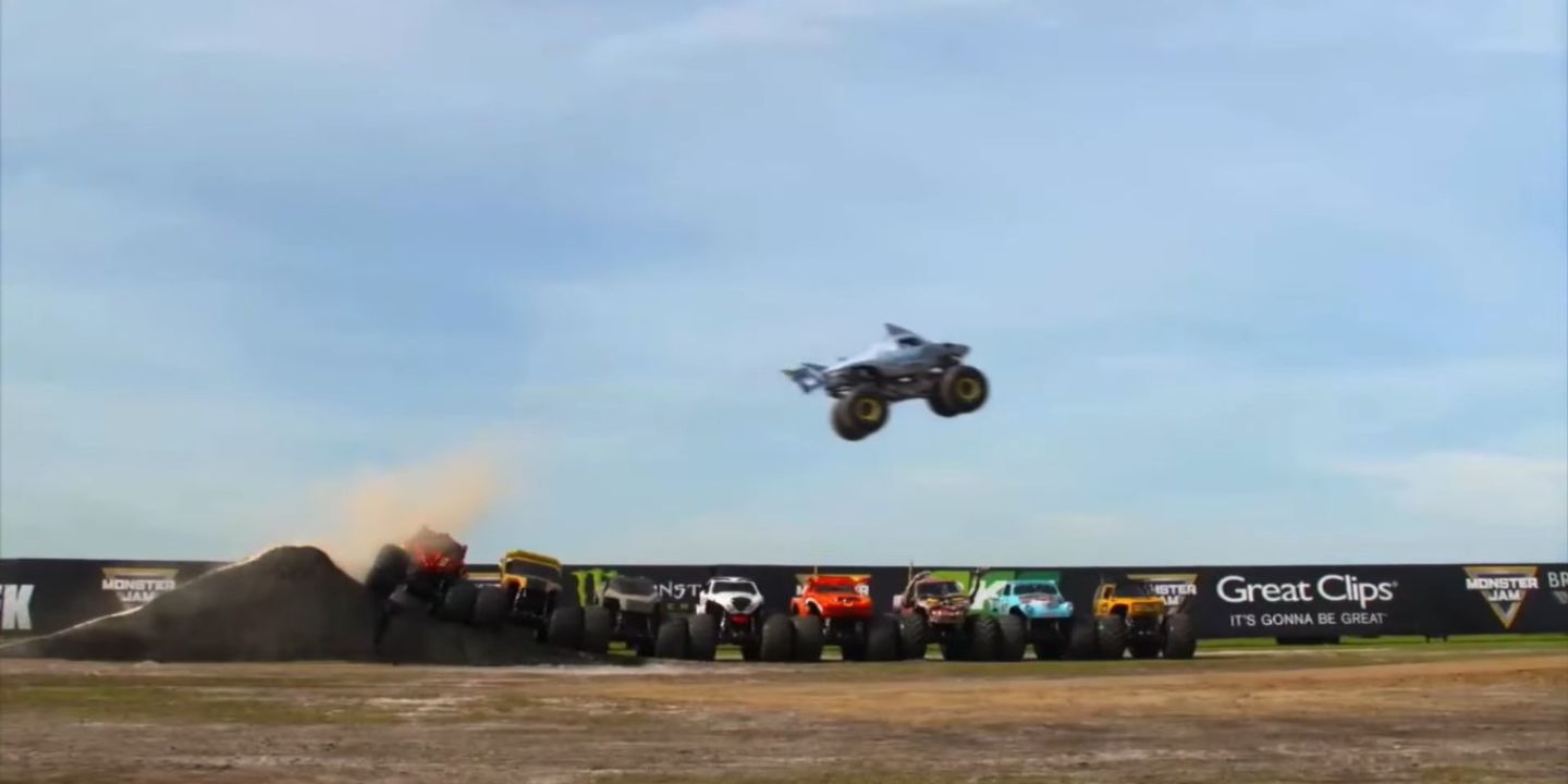 20. Megalodon's Record Jump Over Eight Monster Trucks